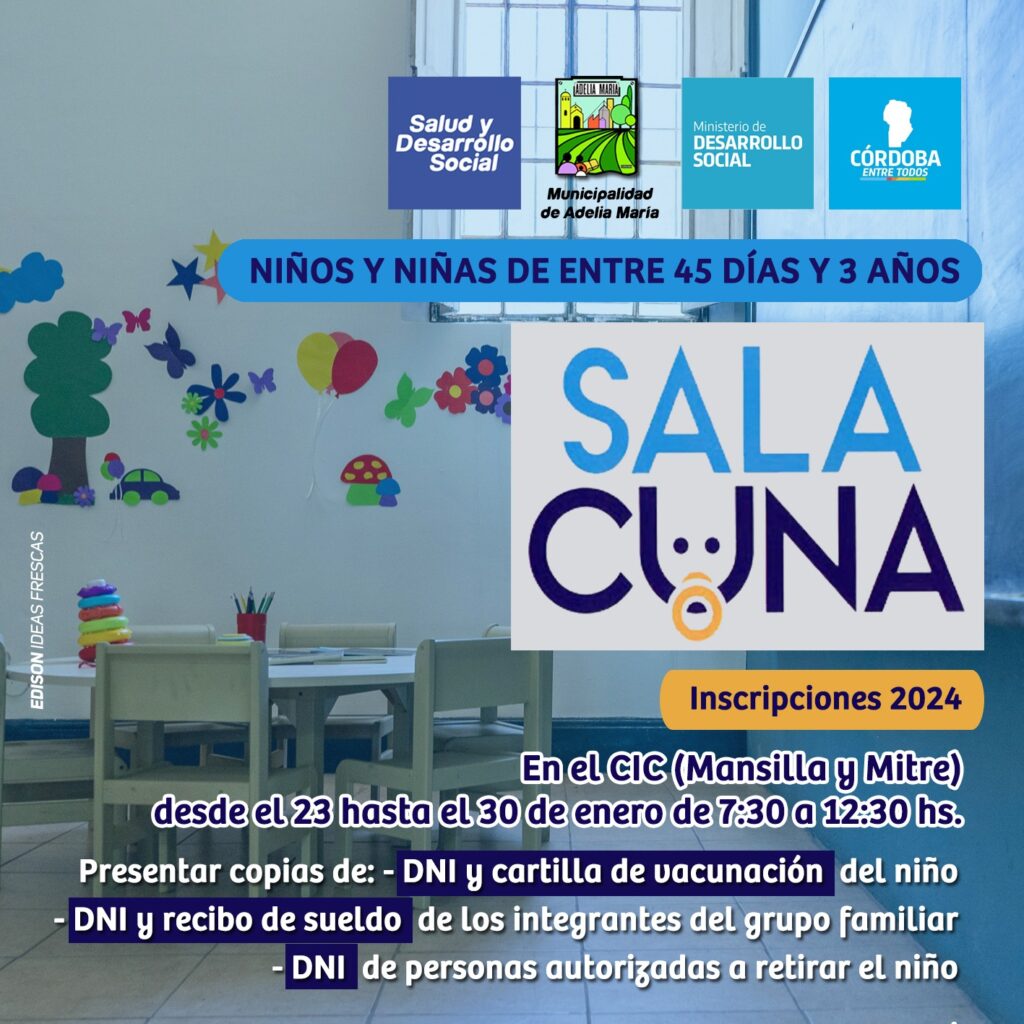 La Sala Cuna “Jardín Encantado” informa que se llevarán a cabo las inscripciones de niños y niñas de entre 45 días de vida y 3 años de edad.