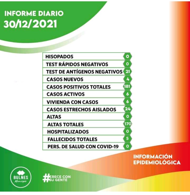 Bulnes sumó, el 30 de diciembre, cuatro nuevos casos positivos de coronavirus. De esta manera, son seis los casos activos en la localidad.