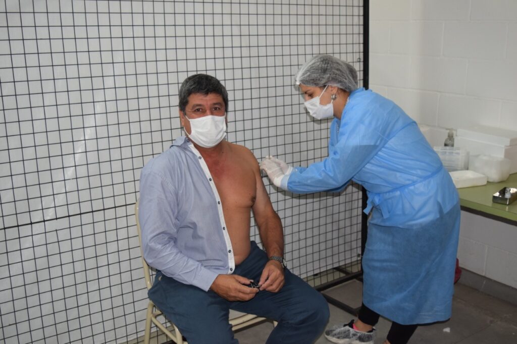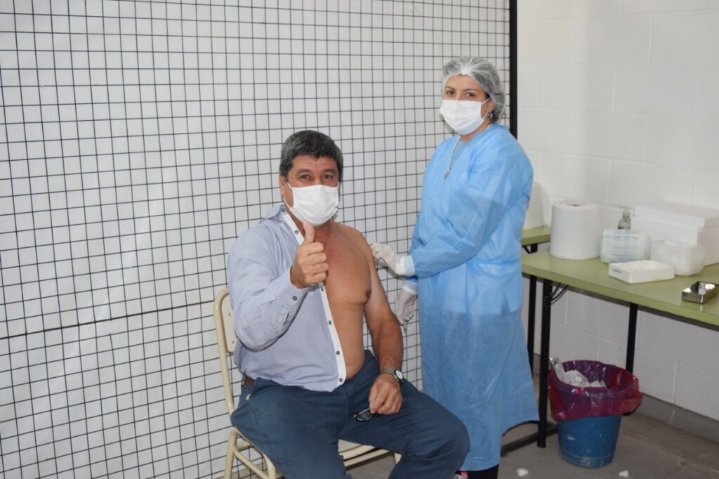 En la jornada también le tocó ser vacunado al intendente municipal, Roberto Casari, quien esperó su turno como el resto de los ciudadanos y luego felicitó y agradeció al personal de salud por el trabajo que realizan día a día.