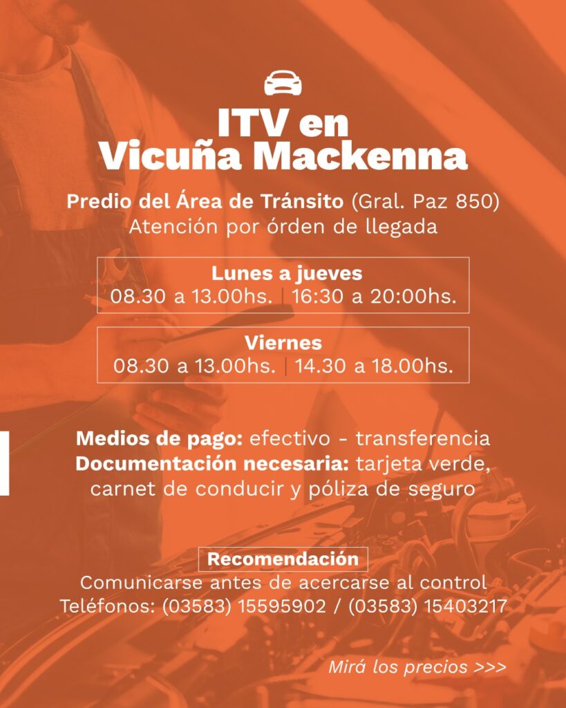 Si necesita realizar el control técnico vehicular, puede acercarse al Predio del Área de Transito de Vicuña Mackenna, ubicado en Gral. Paz 850.