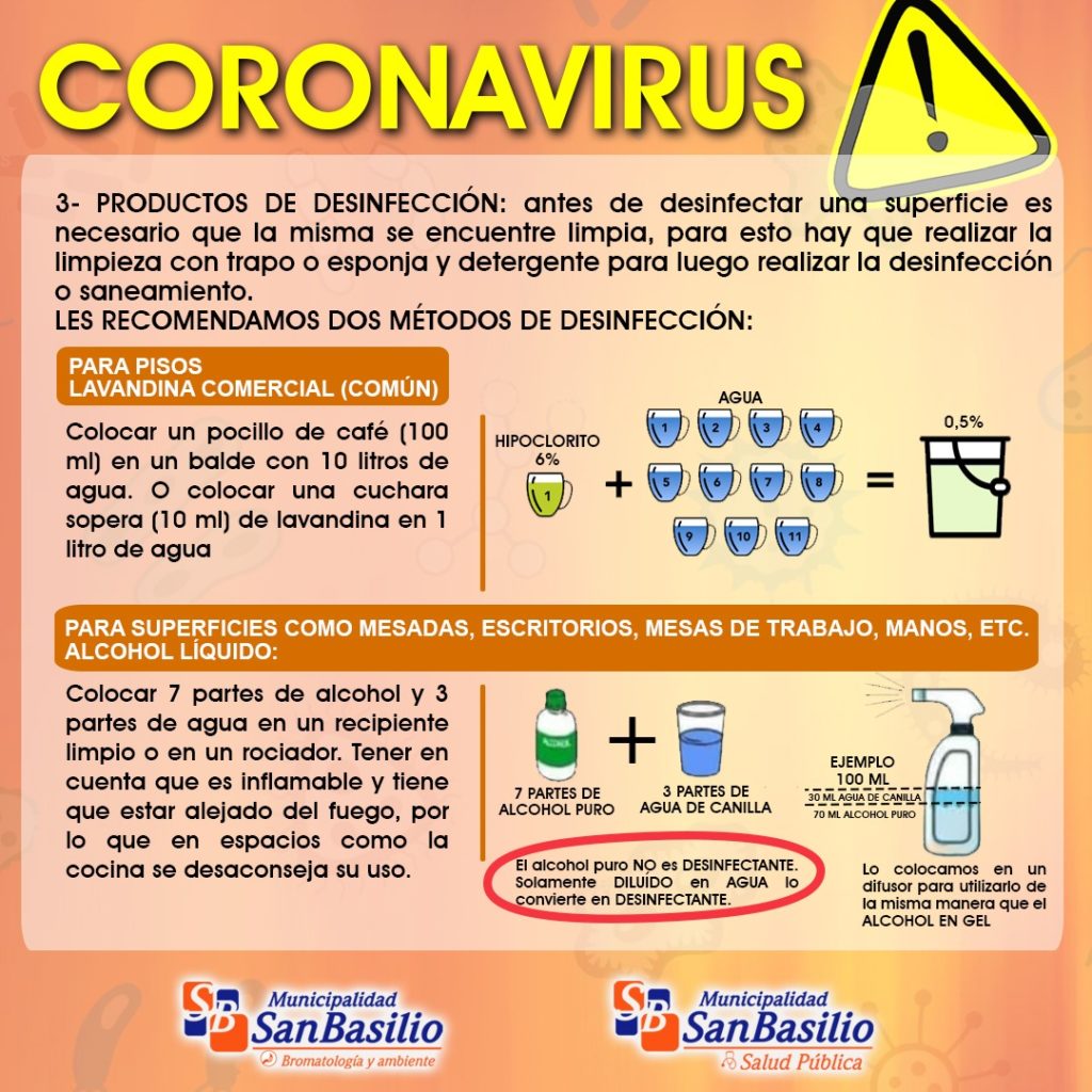 El Coronavirus afecta severamente a nuestro país. Desde la Municipalidad de San Basilio, y siguiendo las recomendaciones del Ministerio de Salud de la Nación se difundieron una serie de recomendaciones a los fines de prevenir el contagio.