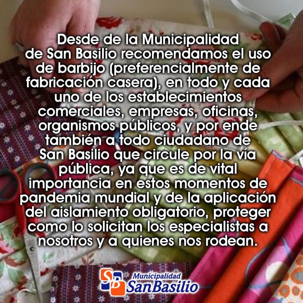 A través de un comunicado, la Municipalidad de San Basilio recomienda el uso de barbijos caseros.