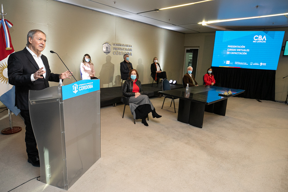 El gobernador, Juan Schiaretti, junto al rector de la Universidad Nacional de Córdoba, Hugo Juri, presentó este jueves a través del programa Cba Me capacita, una propuesta de formación que ofrece más de 50 cursos virtuales, que permitirán a los cordobeses prepararse no sólo para el mundo del trabajo, sino también en problemáticas sociales actuales.