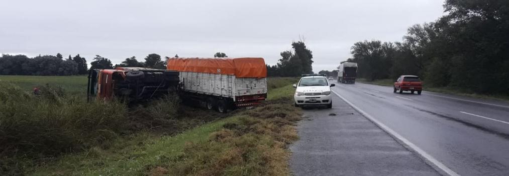 En horas de esta mañana en Ruta nacional N° 158,  jurisdicción de la localidad de Las Higueras, se produjo el despiste y vuelco de un camión marca Scania 310 con acoplado sin carga.