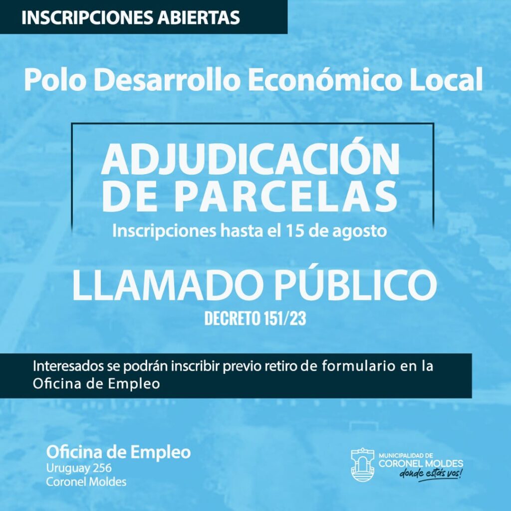 El Polo Desarrollo Económico de Coronel Moldes abrió inscripciones para la adjudicación de parcelas hasta el día 15 de Agosto.