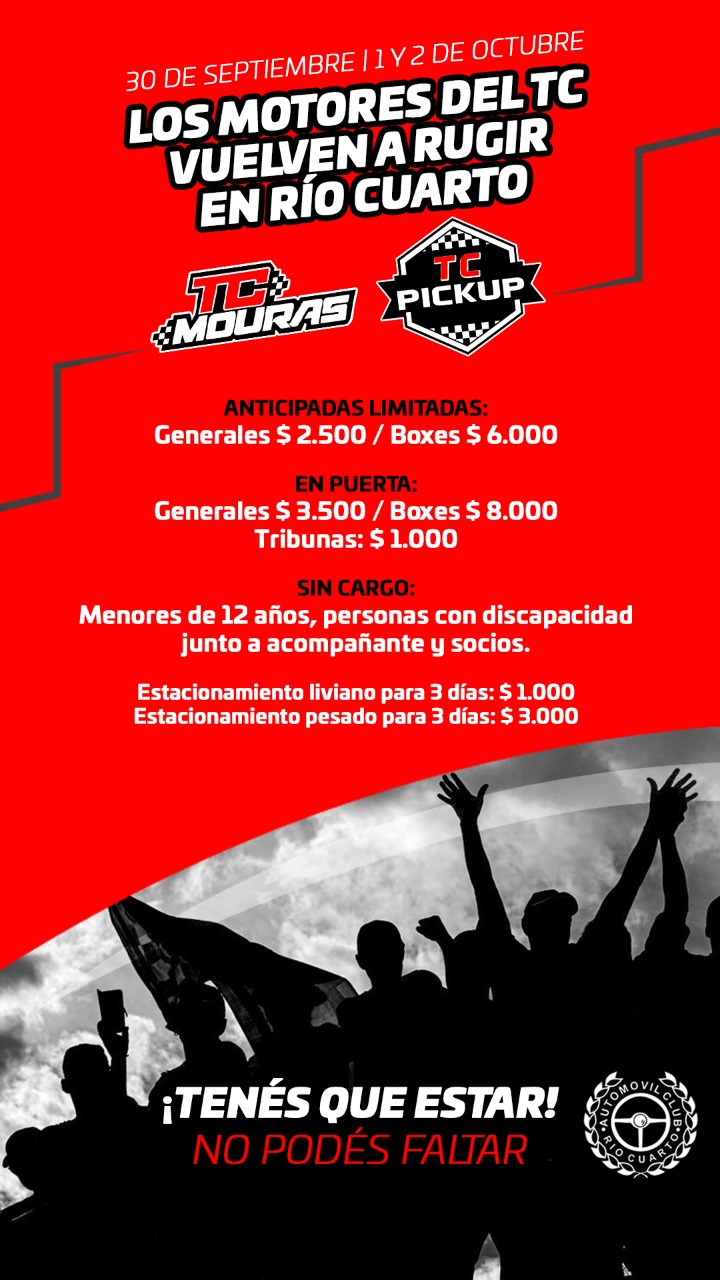 El 1 y 2 de Octubre el TC Mouras y TC Pickup corren en Río Cuarto.