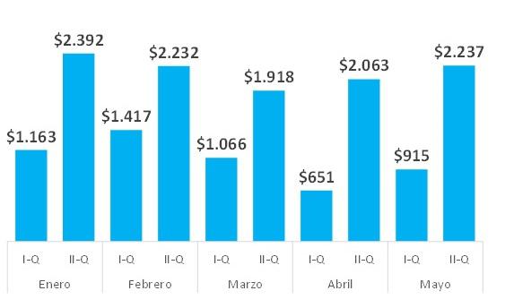 Esto implica un incremento del 8,4 por ciento respecto a lo transferido por la segunda quincena del mes de abril.