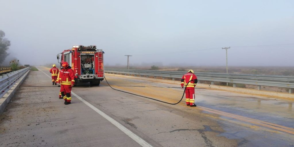A partir de las 10.30 se habilitó una mano de la ruta debido a que la limpieza de todo este sector es lenta por las características del producto que cayó sobre la carpeta asfáltica.