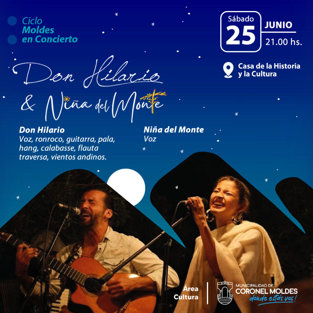 Se presentarán este Sábado 25 de Junio, en la Casa de la Historia y la Cultura, el Dúo Don Hilario y Niña del Monte, en el marco del programa impulsado por la Municipalidad de Coronel Moldes de «MOLDES CONCIERTO».