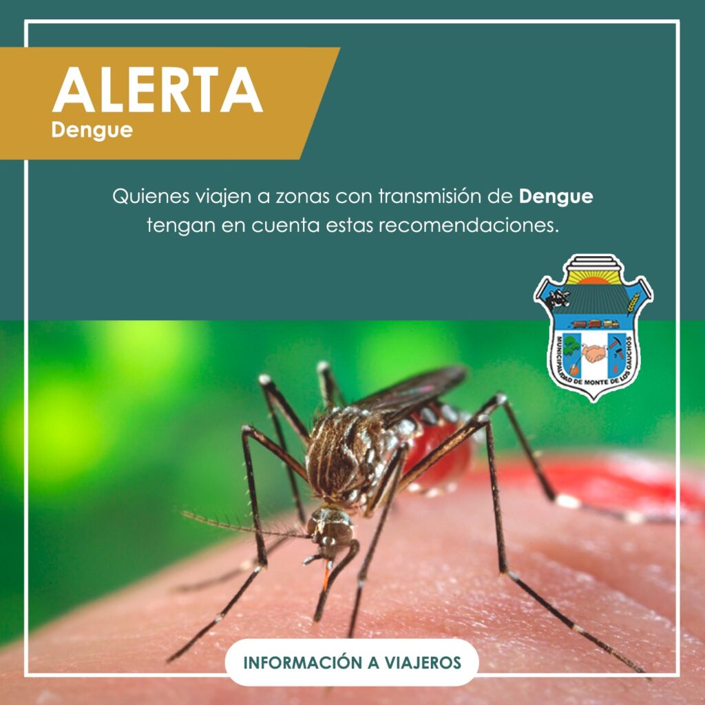 Quienes viajen a zonas con presencia de Dengue, enfermedad transmitida por la picadura del mosquito Aedes Aegypti; por favor tengan en cuenta estas recomendaciones de la Dirección de Salud de la Municipalidad de Monte de los Gauchos: