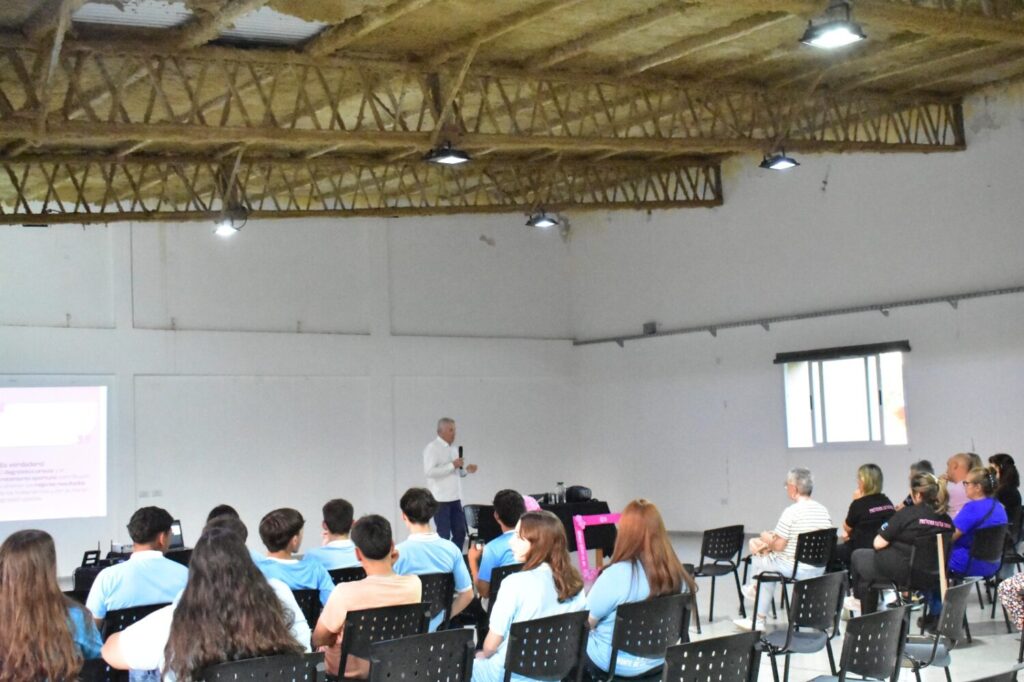 Con la claridad y la didáctica que lo caracterizan, el Dr. explicó la importancia de los controles ginecológicos para la prevención y detección oportuna del Cáncer de Mama. Como cierre, los alumnos adolescentes, dispuestos en una ronda que promovió un espacio diálogo, pudieron realizar consultas al profesional.