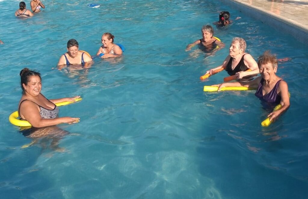 Asisten 22 personas, de entre 50 y 85 años de edad, los días martes y jueves de 18:00 a 20:00 hs. a las instalaciones municipales donde realizan actividad física, gimnasia en el agua, aprenden natación y se entretienen con el tejo, el truco y juegos didácticos de mesa.