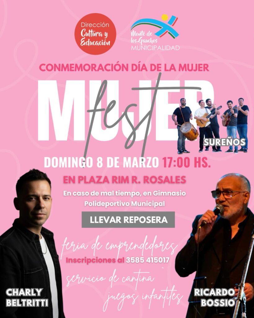 Conmemorando el Día de la Mujer, la Dirección de Cultura y Educación de la Municipalidad de Monte de los Gauchos organiza MUJER FEST.