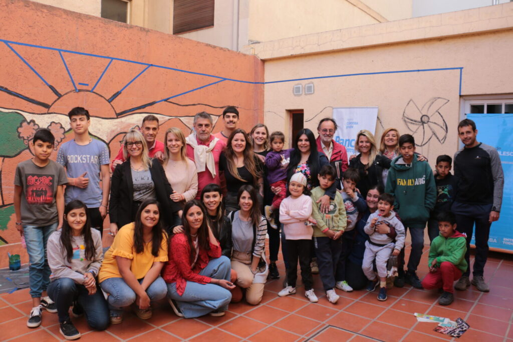 Niños y niñas de la localidad de Río Cuarto participaron en una muraleada en la delegación de SeNAF una actividad en conjunto con la Agencia Córdoba Joven.