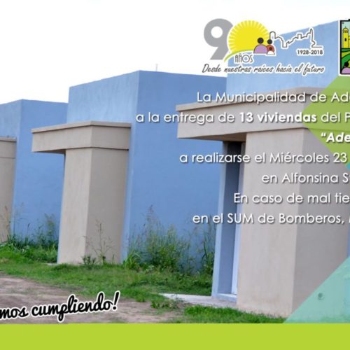22 enero, 2019Este miércoles se entregarán 13 viviendas a los adjudicatarios del programa «Adelia, Mi Sueño, Mi Casa»
