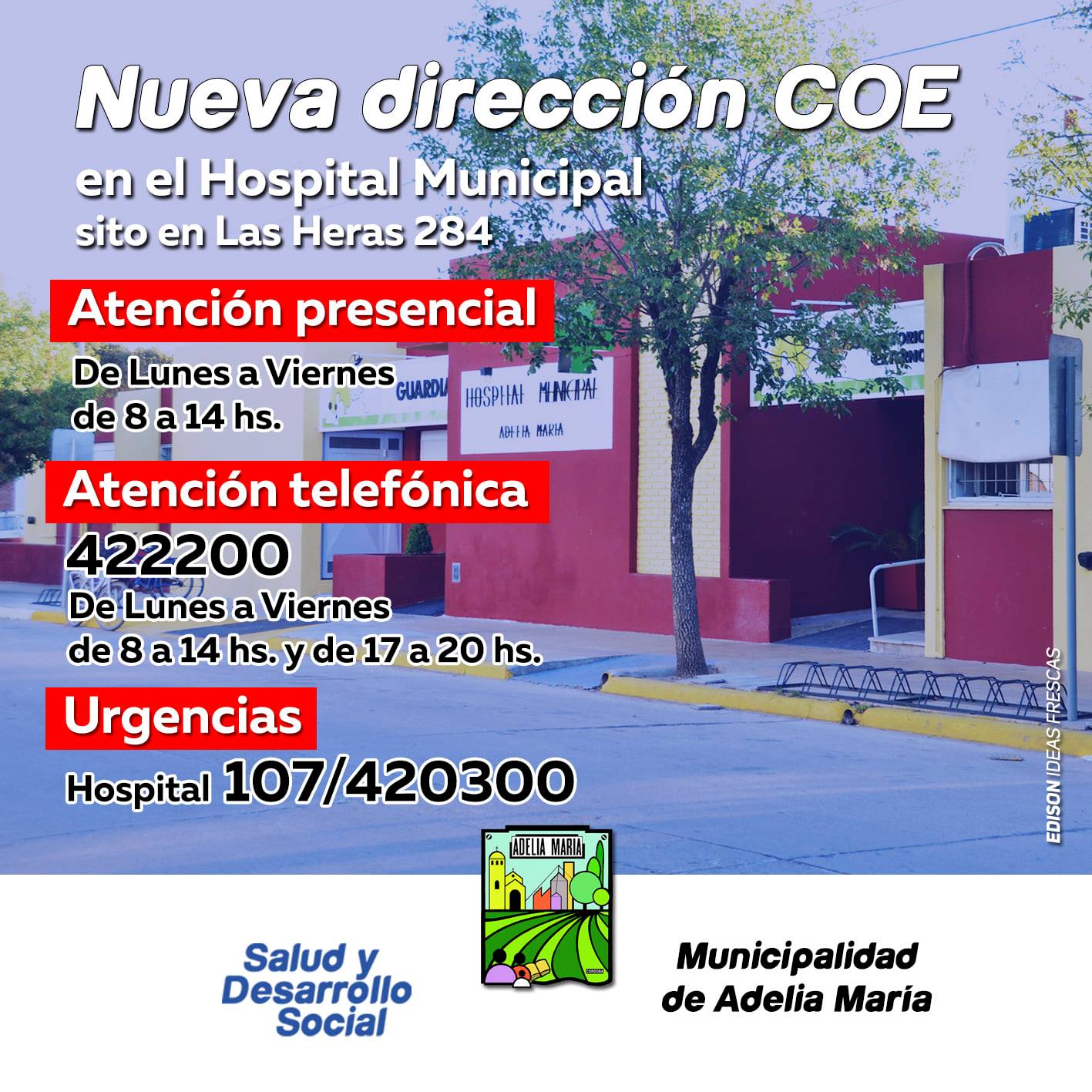 La Municipalidad de Adelia María informó la nueva dirección del COE local.
