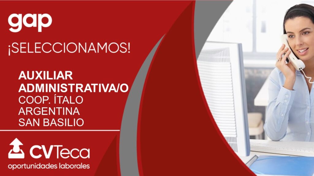 Para desempeñarse, media jornada (Part-Time/ Medio Día), como auxiliar en el área de