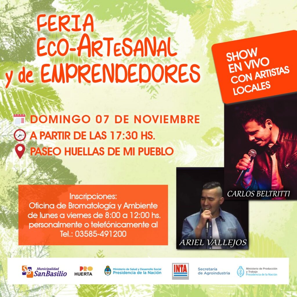 Con el objetivo de generar un espacio de encuentro, reflexión, intercambio de saberes, y comercialización para los feriantes cuya actividad esté relacionada a la agricultura familiar agroecológica, elaboración artesanal y pequeños emprendedores, la Municipalidad de San Basilio invita a todas y todos a participar, respetando las normas de bioseguridad establecidas, de este gran evento al aire libre.