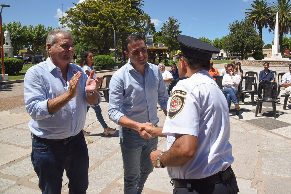 Continuando con el Plan Integral de Seguridad Ciudadana y Prevención del Delito, el Ministro de Gobierno y Seguridad, Julián López; junto a su par de Agricultura, Sergio Busso; encabezó el acto de apertura de destacamentos de la Policía Rural en las localidades de Achiras, La Lagunilla y Coronel Baigorria, en el departamento Río Cuarto.