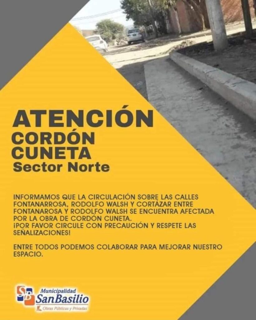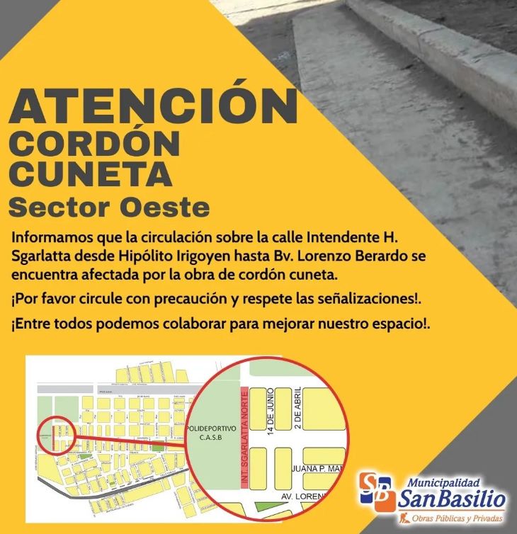 La Municipalidad de San Basilio informa que se están realizando obras de cordón cuneta en algunas zonas de la ciudad.
