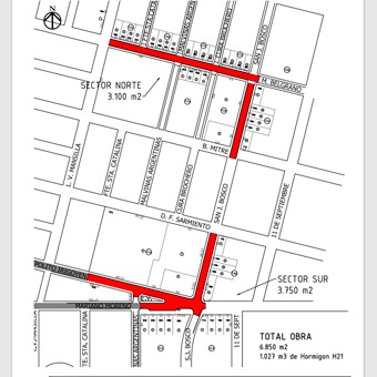 La obra de pavimentación comprende el trabajo de 3.100 m² en las calles Belgrano (entre las arterias San Juan Bosco y Mansilla), y San Juan Bosco en los tramos entre Moreno y Sarmiento, por un lado; y entre Mitre y Belgrano, por el otro.