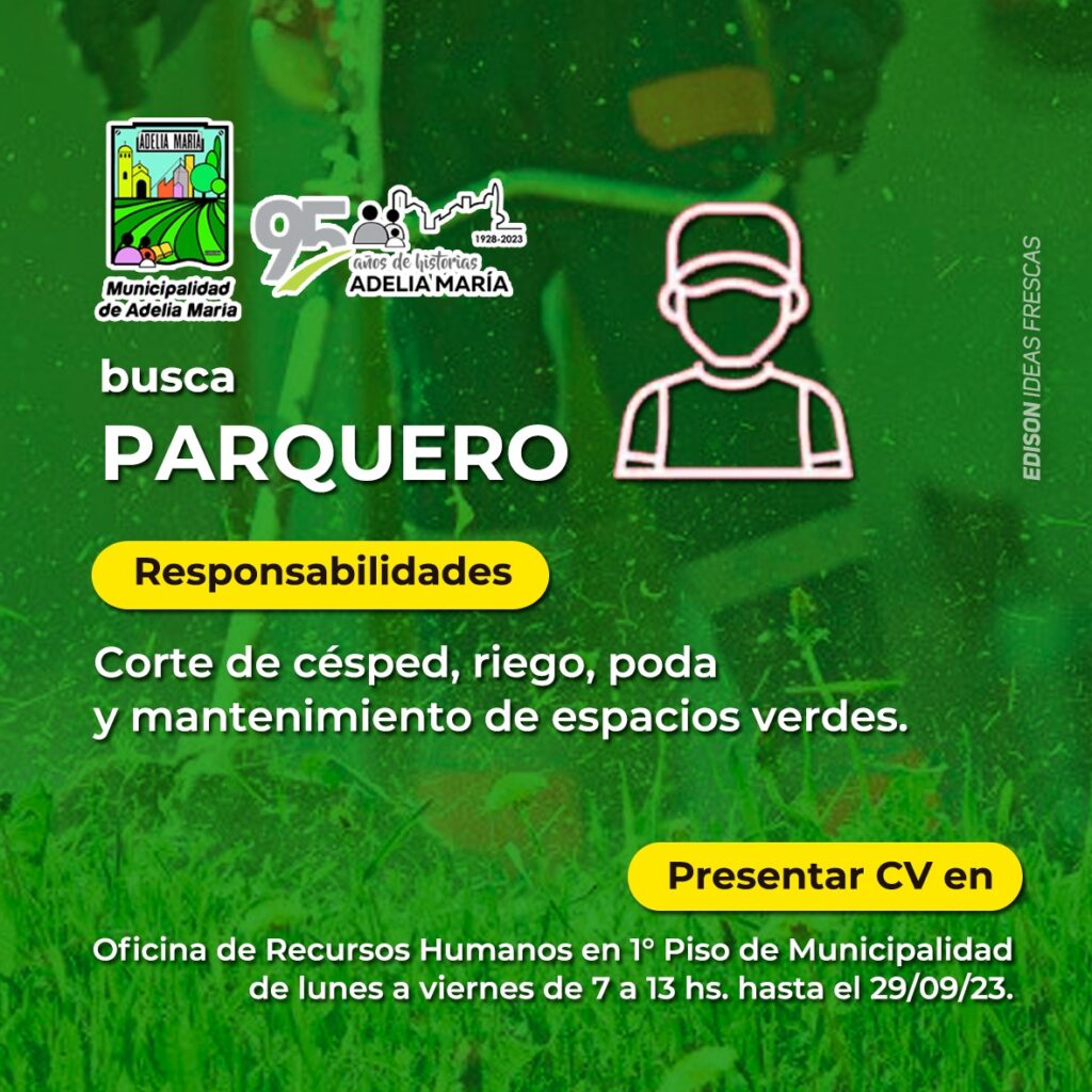 La Municipalidad de Adelia María está buscando personal para cubrir puesto de parquero.