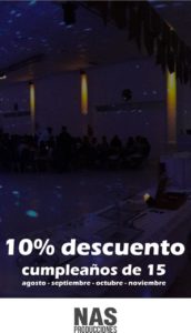 Contratá a NAS Producciones para eventos en agosto, septiembre, octubre y noviembre y disfrutá de un 10% de descuento.