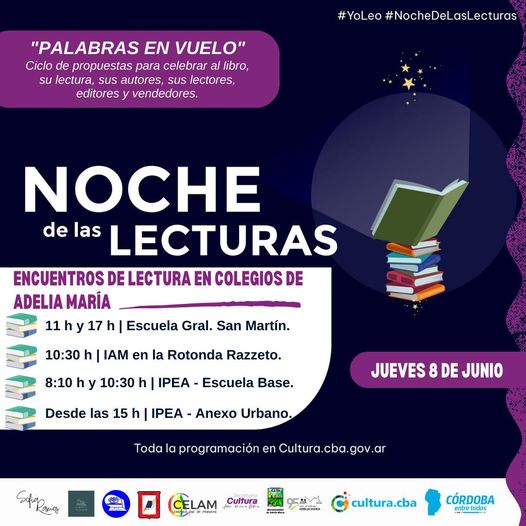Hoy se sigue con una propuesta llena de cultura y emoción. Llega a la localidad de Adelia María, la «Noche de las Lecturas», un espacio de encuentro para compartir experiencias, libros y lecturas creado desde la Agencia Córdoba Cultura, con el propósito principal de que «Córdoba lea».