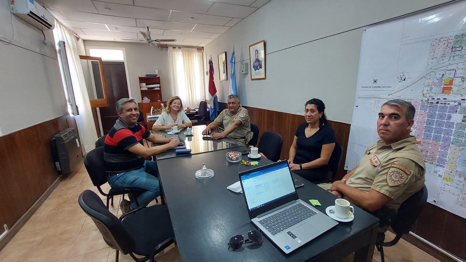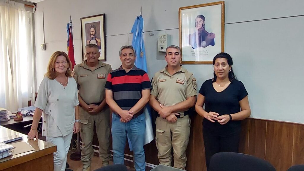 Esta mañana se reunieron la Intendenta de Coronel Moldes, Beby Rosso y el Vice Intendente, Gustavo Arguello junto con el director de la Patrulla Rural Sur, Crio. Mayor Hilario Pereyra y los jefes de la Division Río Cuarto, Crio. Sanchez y Crio. Vasquetto.