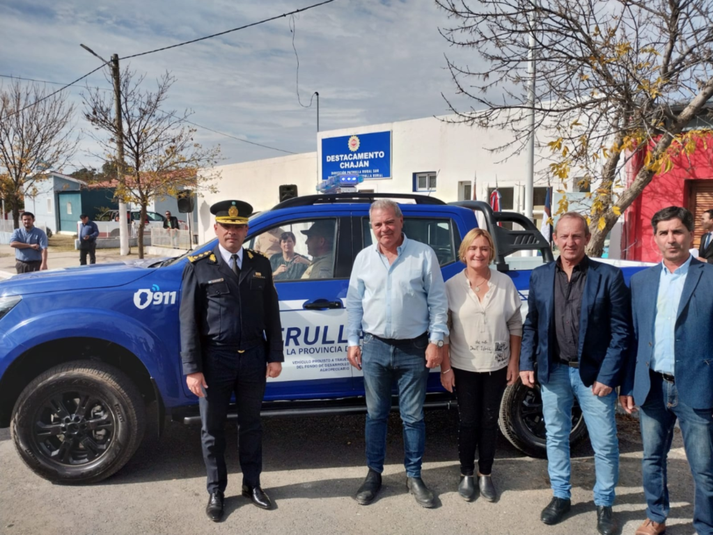 Acompañaron al Ministro en el acto de entrega de los utilitarios, los Intendentes de Chaján y Río de los Sauces, Ricardo Reynoso y Néstor Fabián Gigena, respectivamente; la Legisladora Milena Rosso, el Director General de Patrulla Rural Comisario General Marcelo Marín, el Director de la Patrulla Rural Sur, Comisario Hilario Pereyra, entre otras autoridades.