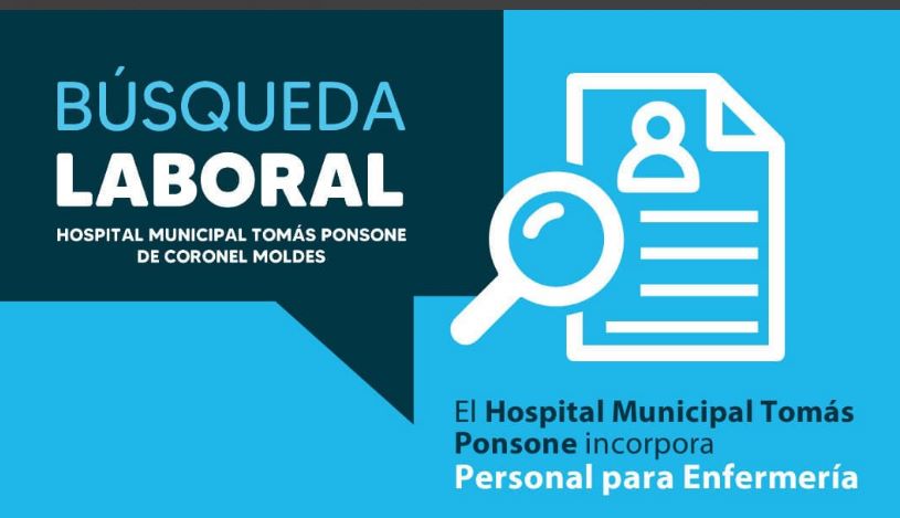 La Oficina de Empleo de la Municipalidad de Coronel Moldes emitió una búsqueda laboral para cubrir puesto de Personal en enfermería para el Hospital Municipal Tomás Ponsone de dicha localidad.