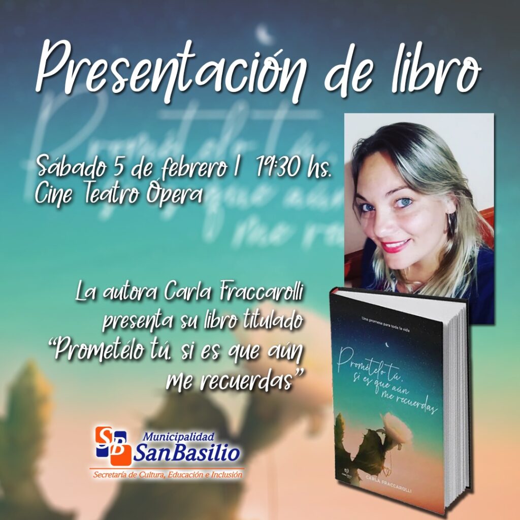 El próxima sábado 5 de febrero, la autora local Carla Fraccarolli, presentará su libro «Promételo tu, su es que aún me recuerdas» ante toda la comunidad.