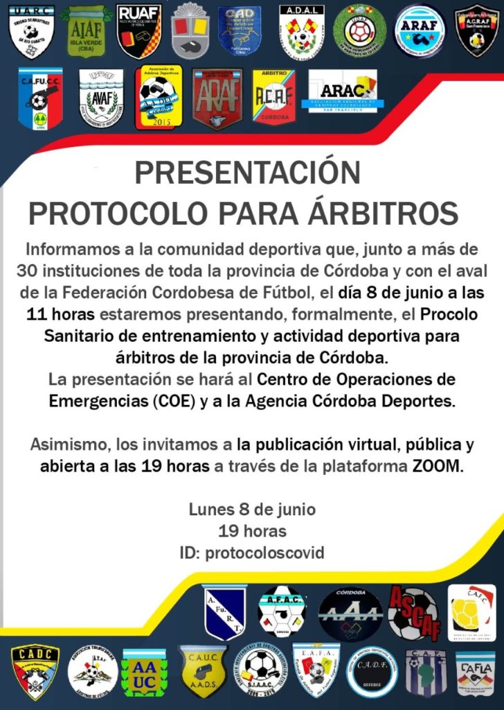 Después de trabajar conjuntamente entre más de 30 asociaciones, agrupaciones y cooperativas de árbitros, se finalizó el Protocolo Sanitario para Árbitros de la provincia de Córdoba.