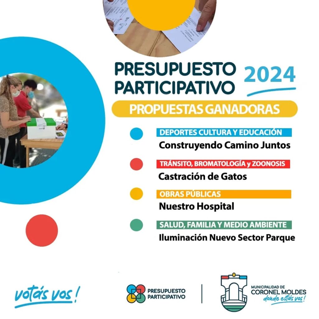 La Municipalidad de Coronel Moldes dio a conocer las propuestas ganadoras del Presupuesto Participativo 2024.