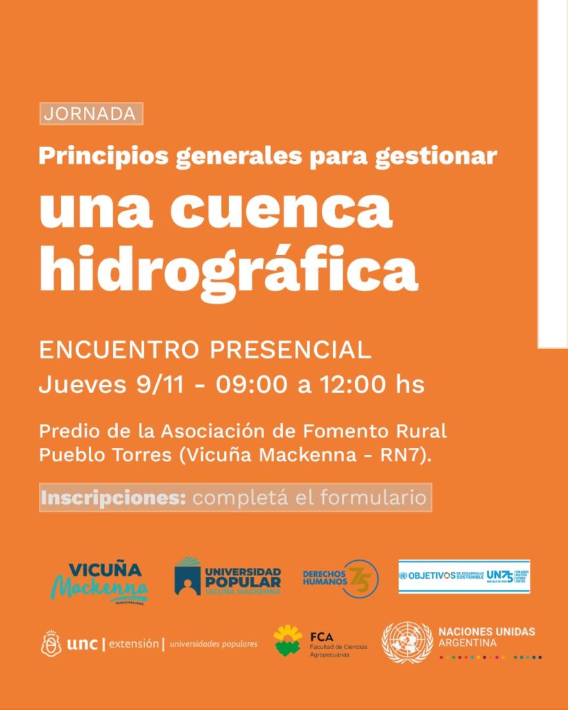 Jornada de Principios generales para gestionar una Cuenca Hidrográfica, el Jueves 9 de Noviembre de 9 a 12 am.