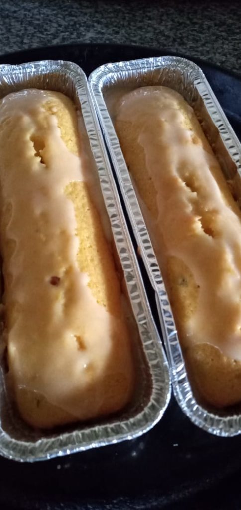 Si desean hacen un glase con 200 gm de azucar impalpable y 2 cucharadas grandes de jugo de mandarina y se lo esparcimos arriba.