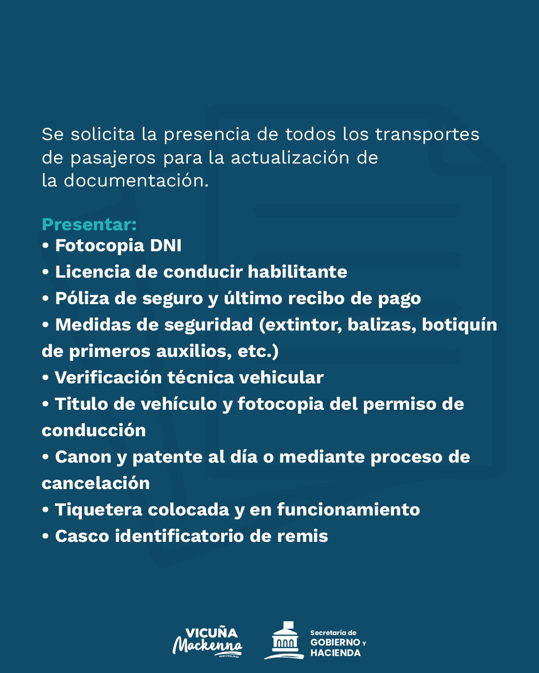 La Municipalidad de Vicuña Mackenna realizará el relevamiento de remises habilitados de la ciudad.