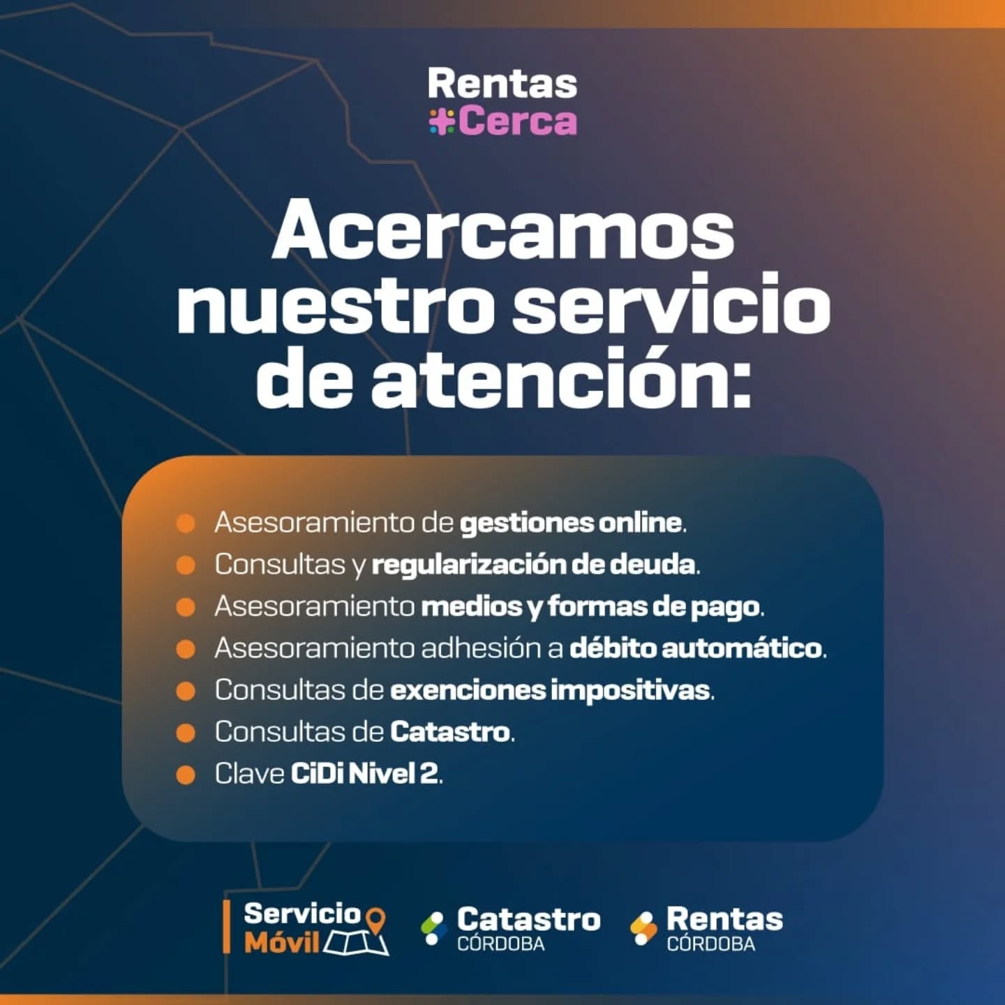 Este miércoles 21 de enero, el Servicio Móvil de Rentas y Catastro Córdoba estará presente en nuestra localidad para brindar asesoramiento y atención personalizada.