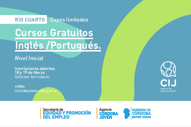 Son cursos gratuitos de inglés y portugués, en sus niveles iniciales, que se dictarán en el SUM del Centro Cívico de Río Cuarto. Están orientados a jóvenes, de entre 18 y 35 años, que residan en la ciudad.