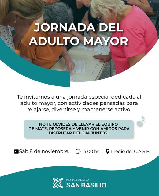 Un día para disfrutar y compartir juntos Sábado 8 de noviembre a las 14:00 horas en el Predio del C.A.S.B. Traé equipo de mate y amigos para compartir un día especial. ¡Te esperamos con mucha alegría! Municipalidad de San Basilio, Construyendo Futuro.