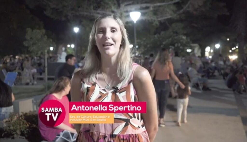 Samba Tv estuvo presente en la inauguración de la Plaza Central de San Basilio, ardua tarea llevada adelante por el gobierno local. Pudimos entrevistar en esta ocasión a Antonella Spertino, Secretaria Cultural de la Municipalidad de San Basilio, la cual nos comentó como fueron todos los trabajos de organización para este gran evento e importante inauguración para la localidad de San Basilio.