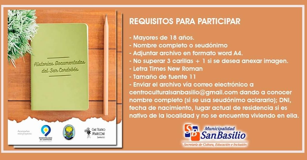 Desde la Secretaria de Cultura, Educación e Inclusión invitamos a los habitantes de nuestra querida localidad a participar siguiendo los instructivos mencionados en el siguiente flyer.