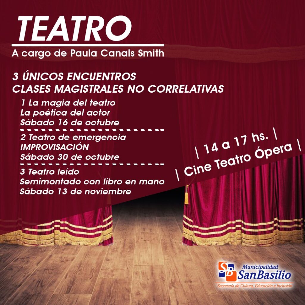 Las clases son gratuitas los sábados 16 y 30 de octubre y el sábado 13 de noviembre de 14:00 a 17:00 en Cine Teatro Ópera de San Basilio.