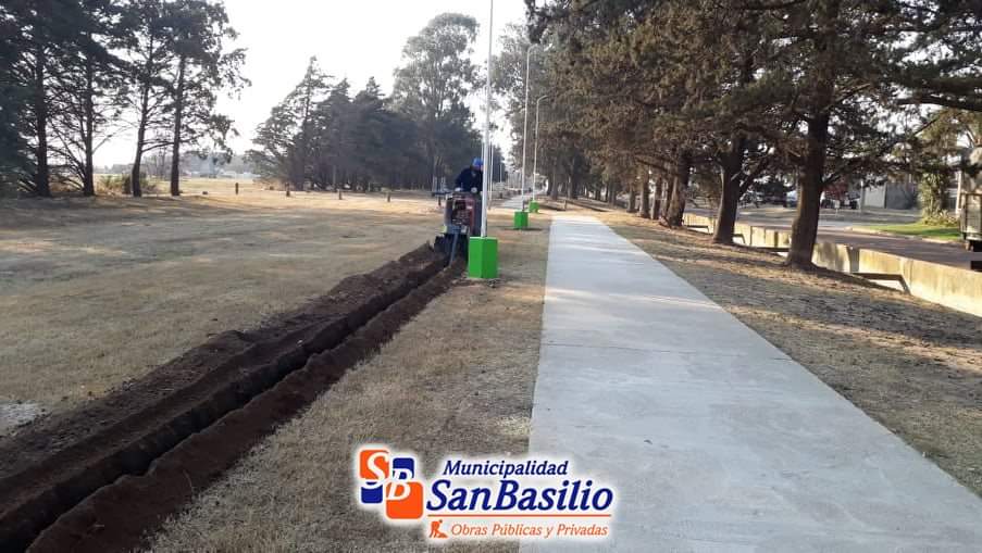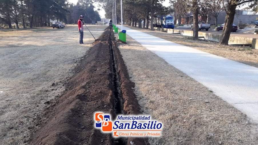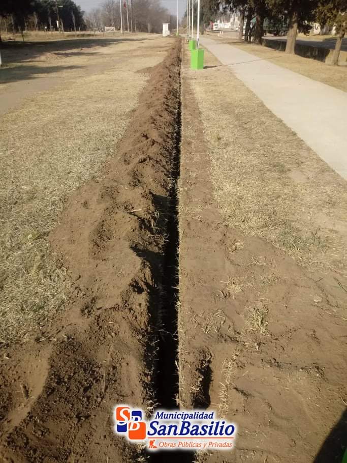 La Dirección de Obras Publicas de la Municipalidad de San Basilio informa la continuidad en las obras correspondientes a la mejora lumínica en el predio del ferrocarril, siguiendo el eje lineal de la ciclovía, en esta oportunidad los trabajos se realizaron el sector este, donde se procedió a la excavación para la luminaria led cumpliendo con todas las normativas, utilización de cable subterráneo de 4 x 4 mm a 80 centímetros de profundidad, con capa de arena, protección y malla de advertencia a 30 centímetros de profundidad.