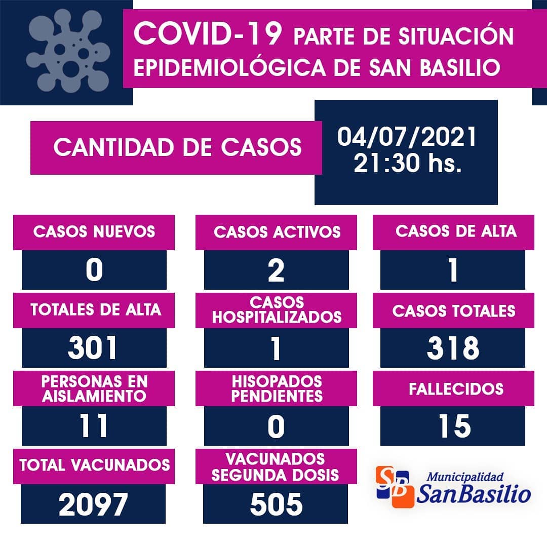 La Municipalidad de San Basilio informó que en la jornada de ayer un paciente que cursaba coronavirus recibió el alta.