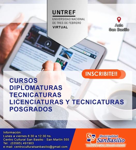 Carreras y cursos a distancia, educación sin límites Empezá a estudiar hoy, empezá a estudiar on-line Consultas 491903 o en oficinas del Centro Cultural Municipal.