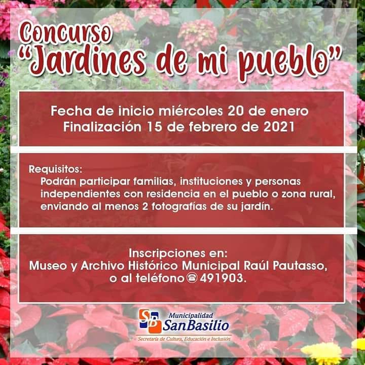 Además, tendrán que enviar al menos dos fotografías de sus jardines con sus respectivas referencias al mail: sanbasilioconcursos@gmail.com o al WhatsApp 3585482042.