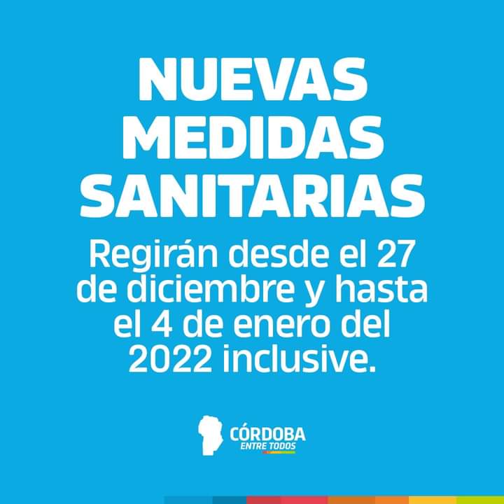 Teniendo en cuenta el esfuerzo de los equipos de salud en los centros de testeo y vacunatorios y a los fines de proteger a la población, es que se dispone implementar nuevas medidas sanitarias en la provincia desde el 27/12 hasta el 4/01 inclusive.
