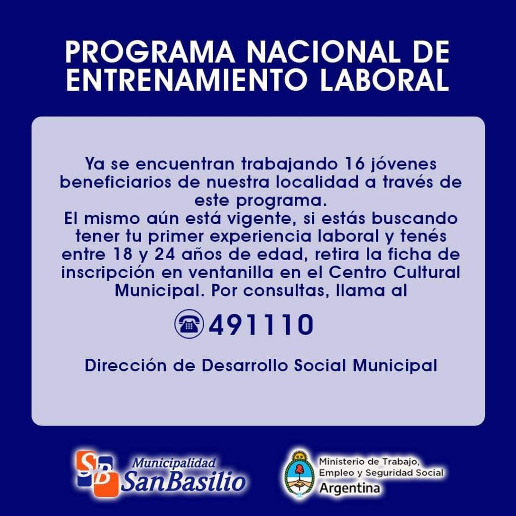 Todavía se encuentran abiertas las inscripciones para inscribirse en los Entrenamientos Laborales. Lo pueden hacer los jóvenes de 18 a 24 años que deseen aprender y realizar tareas en un potencial puesto de trabajo.
