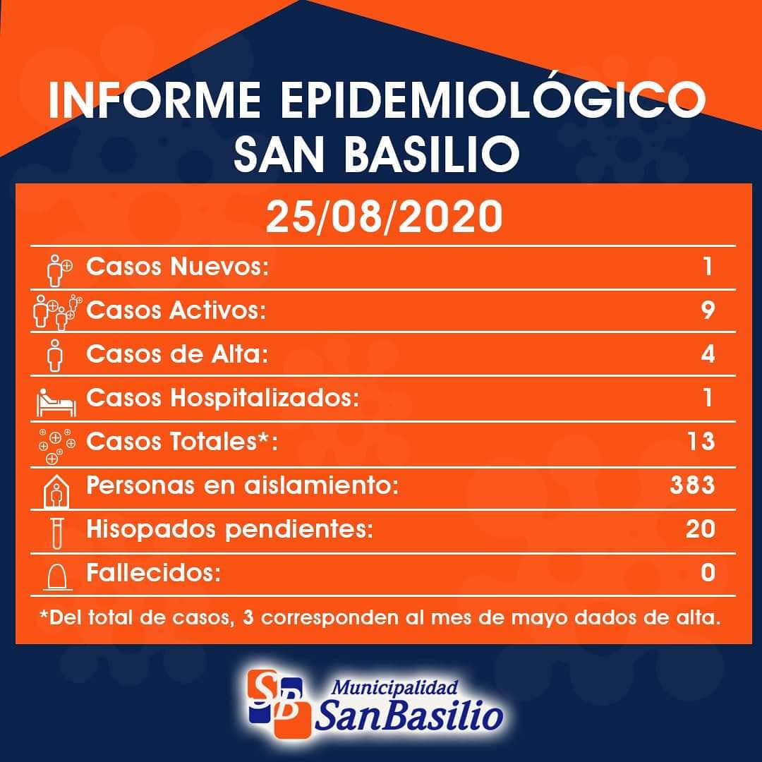 La Municipalidad de San Basilio informó un nuevo caso positivo de coronavirus en la localidad.